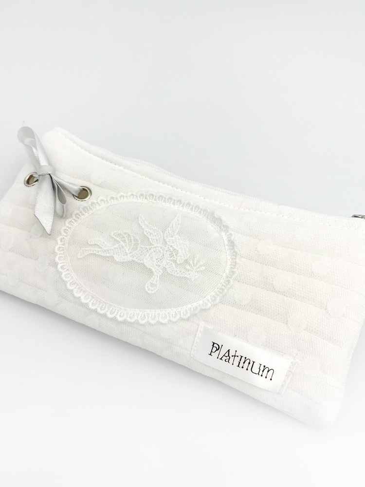 도트 시스루 원단 위, 나팔을 부는 천사가 은은하게 날아다녀요. 책상 위에 놓인 천사는 당신의 내일을 응원하며 작은 환기를 불어넣습니다. 레이스, 도트, 레자 등 다양한 텍스처가 어우러져 키치한 무드를 한껏 살렸어요.