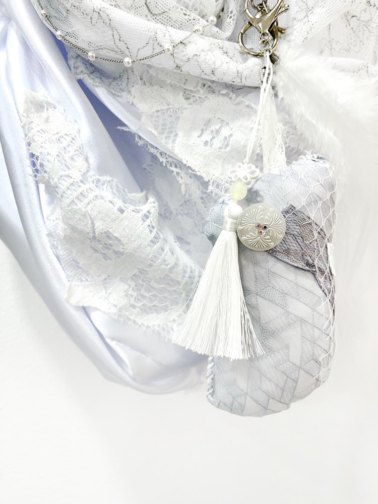 다양한 사람들 앞에서 저마다 다른 내 모습을 마주할 때면 가끔은 스스로도 놀라곤 합니다.수잔 앞에서는 수다스러운 친구가 되고, 지아 옆에서는 듬직한 언니처럼, 부모님 앞에서는 어리광 많은 딸로 변하니까요. 그렇게 모두 ‘나’이지만, 각기 다른 모습을 떠올리며 이번 작업을 완성했습니다. 우리는 사회 속에서 스스로를 숨긴 채 살아가야 할 때가 많습니다. 그럼에도 불구하고, 가까운 사람들 앞에서는 솔직한 나로 존재할 수 있기를 바랍니다. 서로에게 있는 그대로의 모습을 보여줄 수 있는, 그런 따뜻한 관계 속에서요. *핸드메이드 제품 특성상 제작 과정에서 약간의 형태 차이가 생길 수 있으며 스팽글 모티브는 랜덤으로 제작됩니다.
